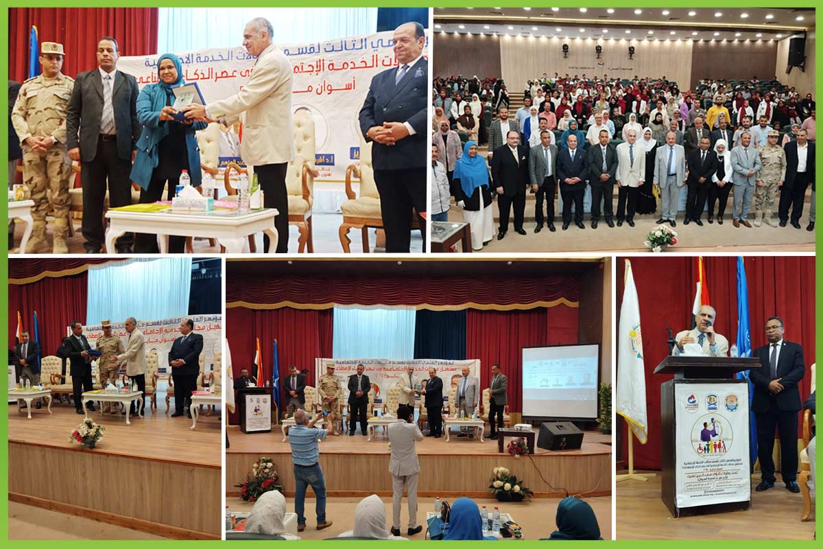 في ظل التعاون المثمر بين جامعة أسوان بقيادة السيد الاستاذ الدكتور لؤي سعد الدين نصرت رئيس الجامعة ، والمؤسسة العربية الافريقية للأبحاث والتنمية المستدامة برئاسة د.أمل عبد الرحمن صالح رئيس مجلس أمناء المؤسسة تم عقد المؤتمر العلمي الثالث لقسم مجالات الخدمة الاجتماعية تحت عنوان”مستقبل مجالات الخدمة الاجتماعية في عصر الذكاء الاصطناعي” وذلك بمقر الجامعة اليوم الموافق ٦ مايو لعام 2050 .