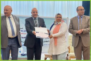 وأوضح الدكتور محمد سيد دندراوي وكيل الكلية لشئون التعليم والطلاب وأمين الملتقي أنه من اهم محاور الملتقي أيضا محور تأهيل الخريجين للعمل في مجال الإعاقة بالتعاون مع المؤسسة الأفريقية ومؤسسة كلنا ايد وحدة، كما يهدف المحور الاخير الي تأهيل الخريجين للأعمال الحرفية والتراثية بالتعاون مع الجمعية التعاونية النسائية للحرف اليدوية ،ومؤسسة جنوبية حرة وفي ختام الملتقي تم تكريم رئيس الجامعة ونائب رئيس الجامعة والسادة الأساتذة رؤساء جلسات الملتقي والسادة المشاركين في الملتقي من المؤسسات الحكومية والأهلية